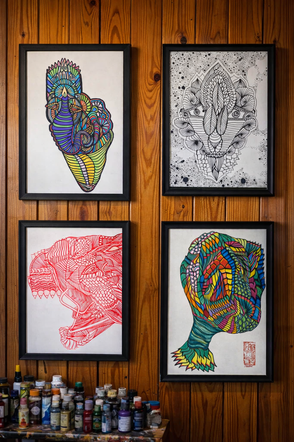 At 20FiveThree Studios, contemporary abstract art investigates the themes of perception, connection, and consciousness, drawing inspiration from historical wisdom traditions, neurological phenomena, and modern discoveries. Through intricate line-work, bold colors, layered symbolism, dynamic compositions, and captivating visual rhythms, I invite viewers to explore how perception shapes our experiences and influences reality.