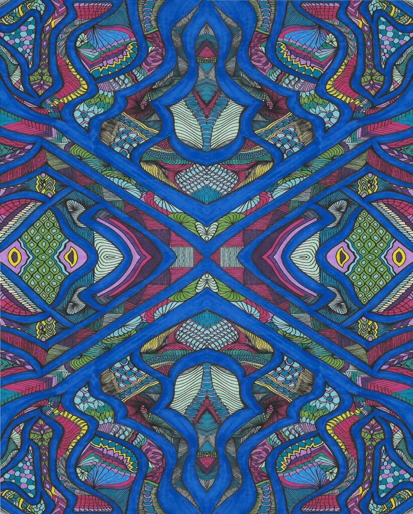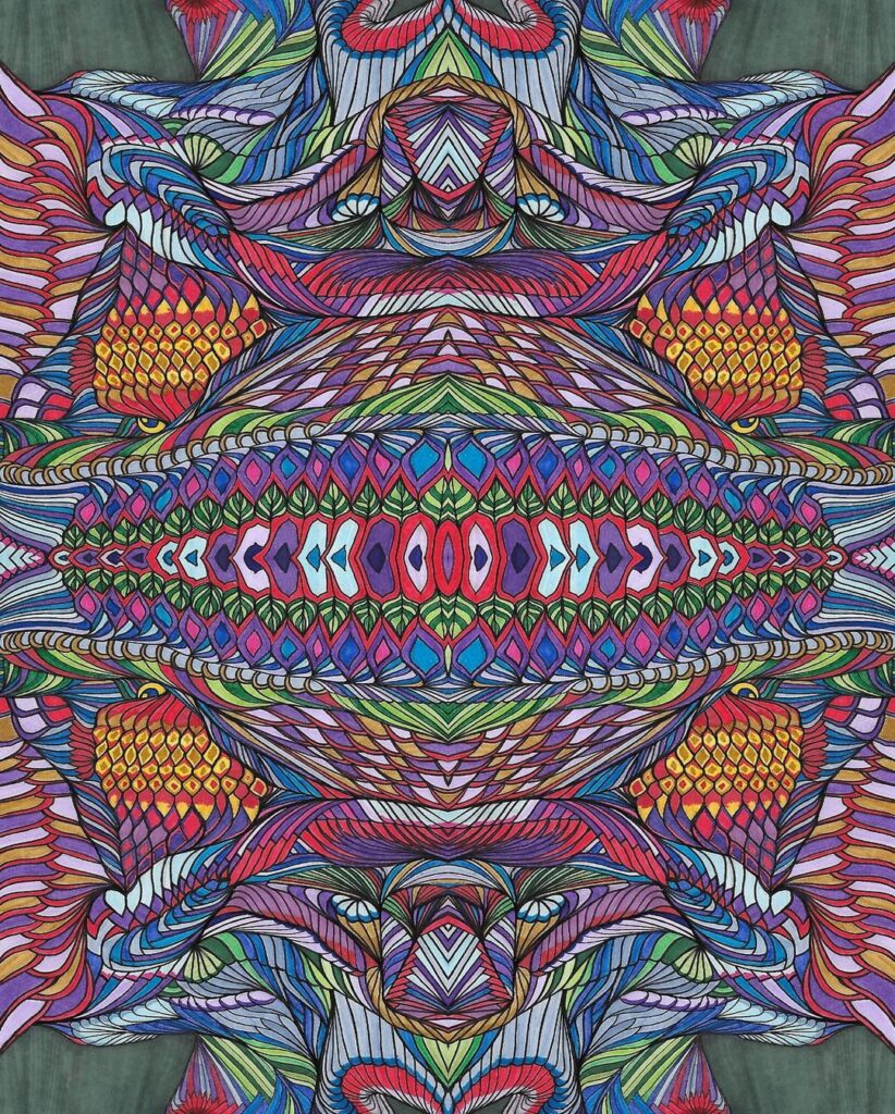 Through detailed drawings, vibrant mandala‑like designs, and layered collages, I invite viewers to explore the nature of perception itself.